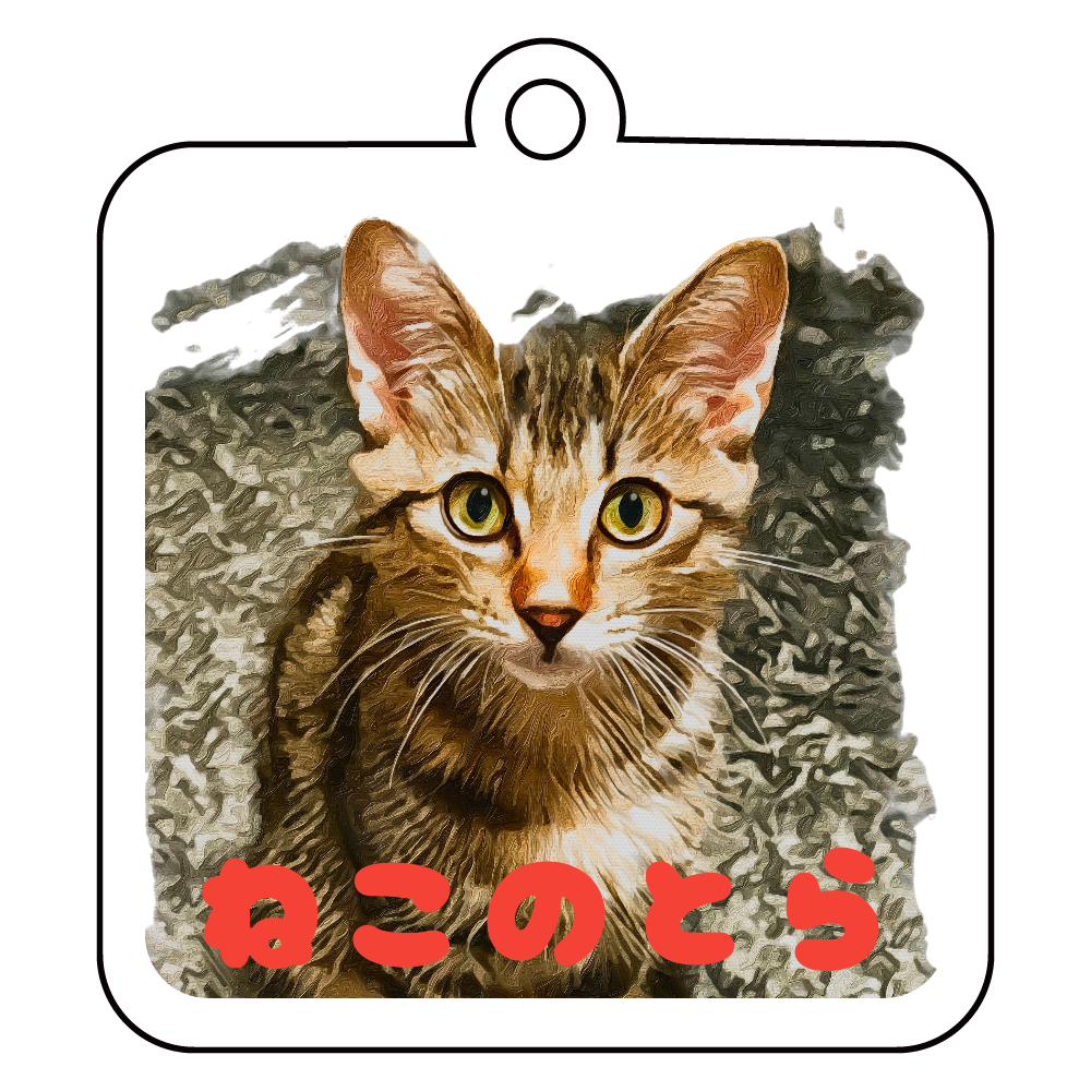 [アクリルキーホルダー四角型 (6cm)] ねこのとら -お行儀よく-