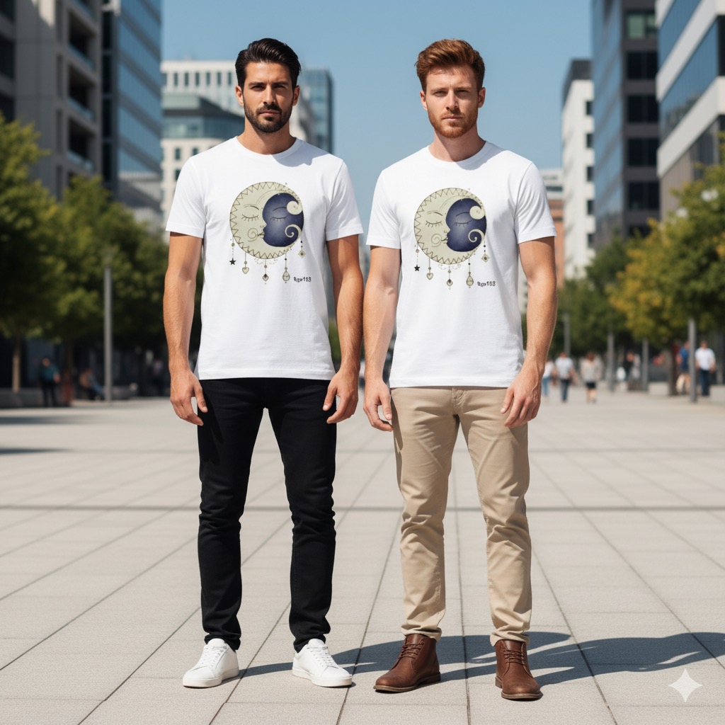 【大人のボヘミアンアート】 神の月とドリームキャッチャーTシャツ/シックでシンプルな完全オリジナル デザイン #74