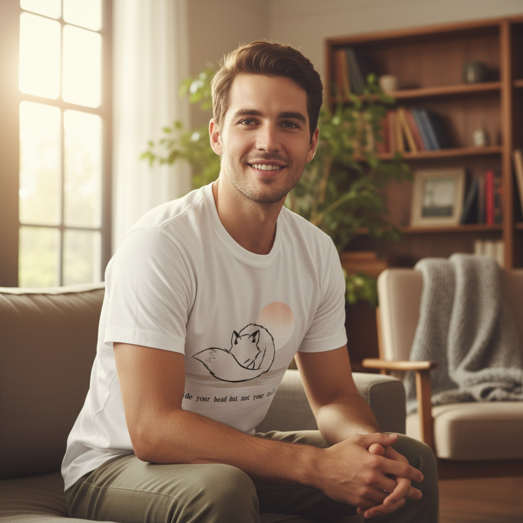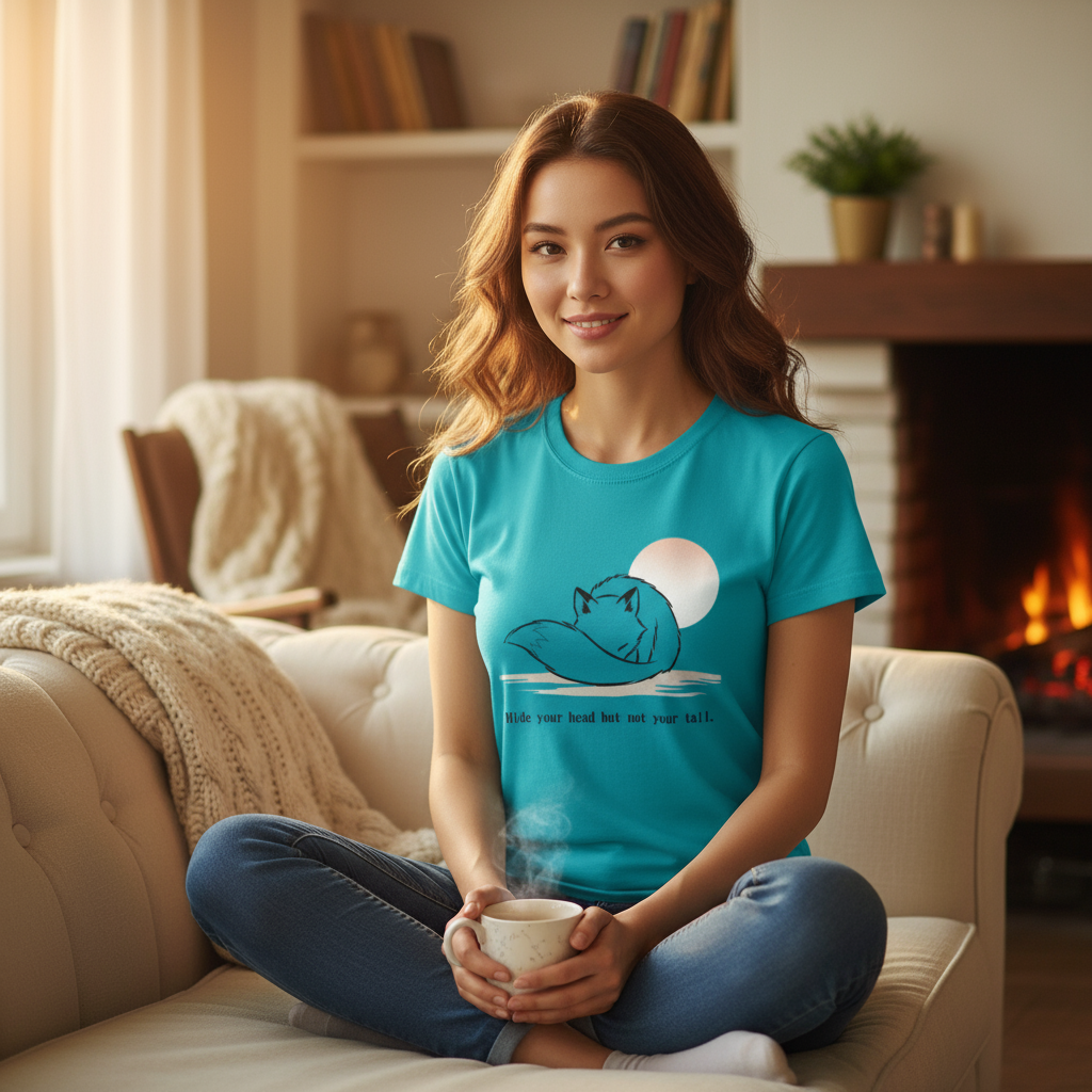 「頭隠して尻隠さず(Hide your head but not your tail.)」をかわいらしいキツネでデザインしました。「頭隠して尻隠さず」は"欠点などの一部分だけを隠し、全体を隠したつもりでいること"を意味することわざです。隠し事をしないに越したことはありませんが、する場合は「頭隠して尻隠さず」なんてことにならないようにしましょう。