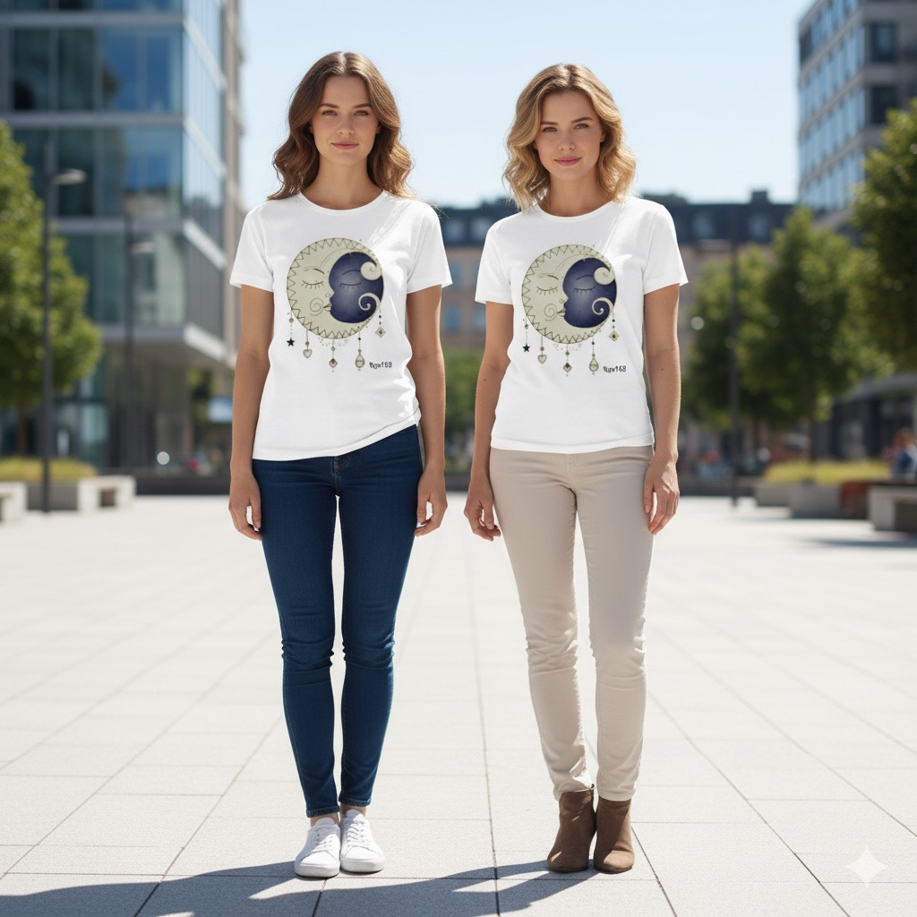 【大人のボヘミアンアート】 神の月とドリームキャッチャーTシャツ/シックでシンプルな完全オリジナル デザイン #73