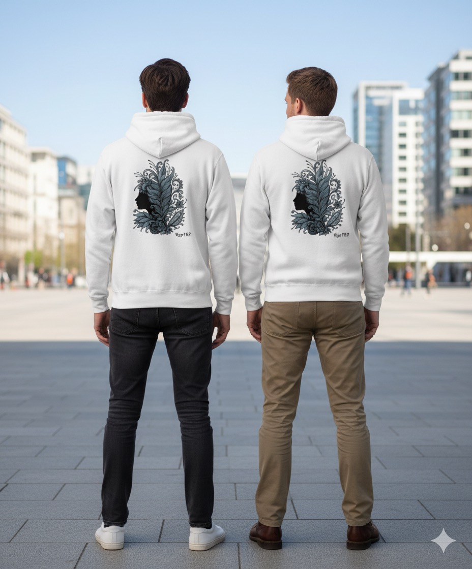 フェ ザーと女性のシルエットパーカー/大人エスニックデザイン #67