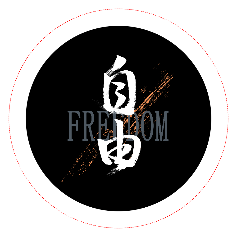 「自由」のオリジナル筆文字缶バッジです。