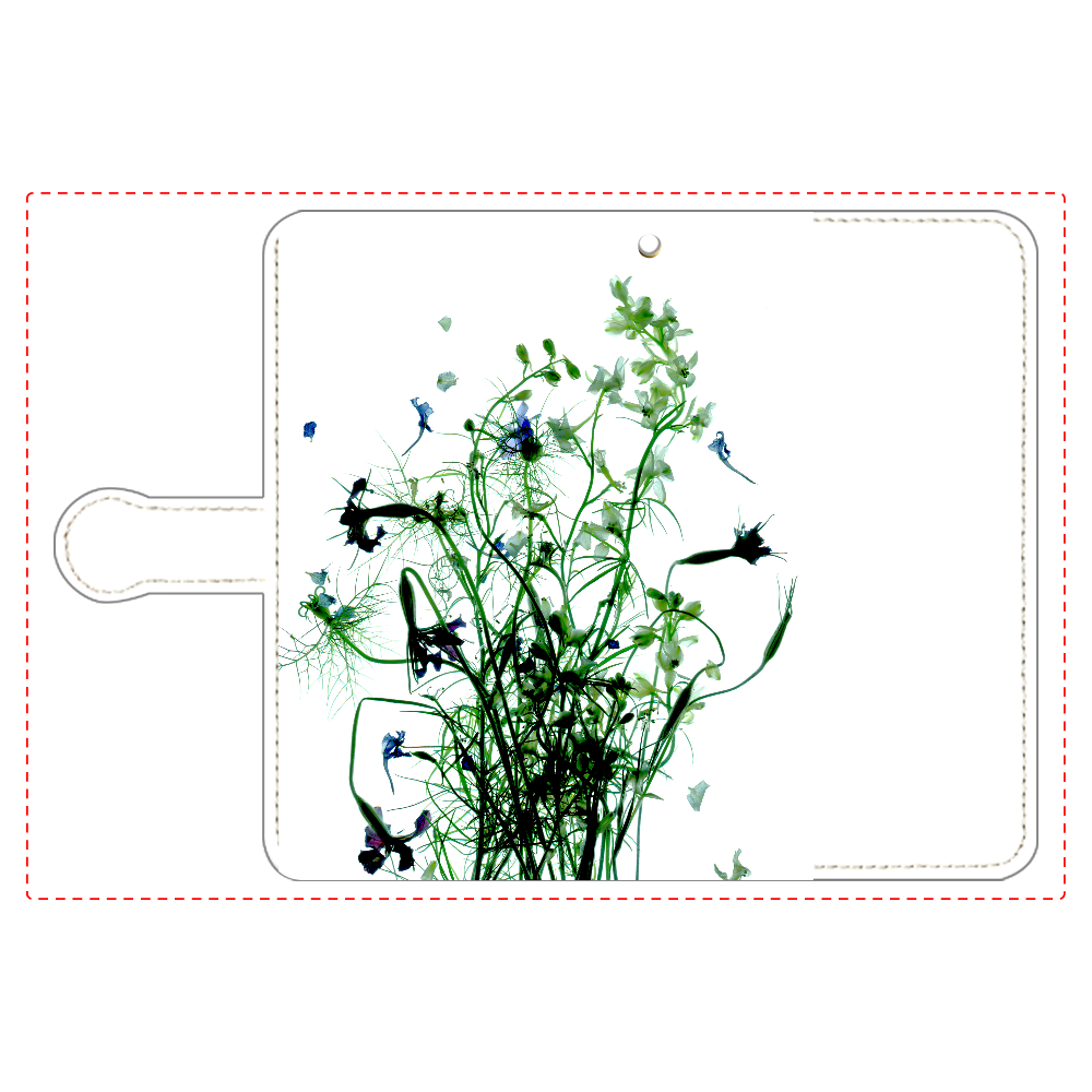 手帳部分:ポリウレタン樹脂(合成皮革)/ホワイト スマホ本体ケース:ポリカーボネート樹脂(プラスチック)/ホワイト 留め具部分:磁石(カバーに内蔵)
