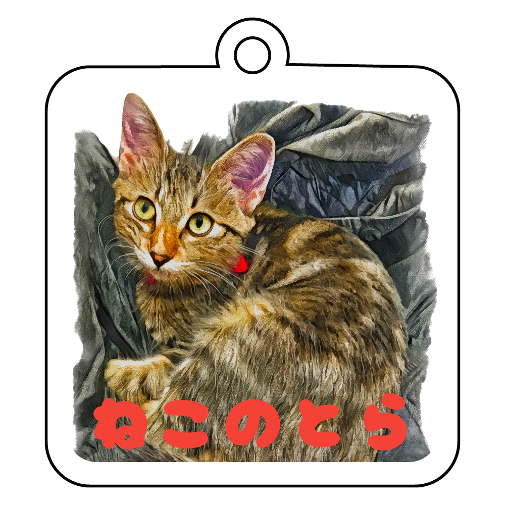[クリルキーホルダー 四角型 (6cm)] ねこのとら -にゃに?-