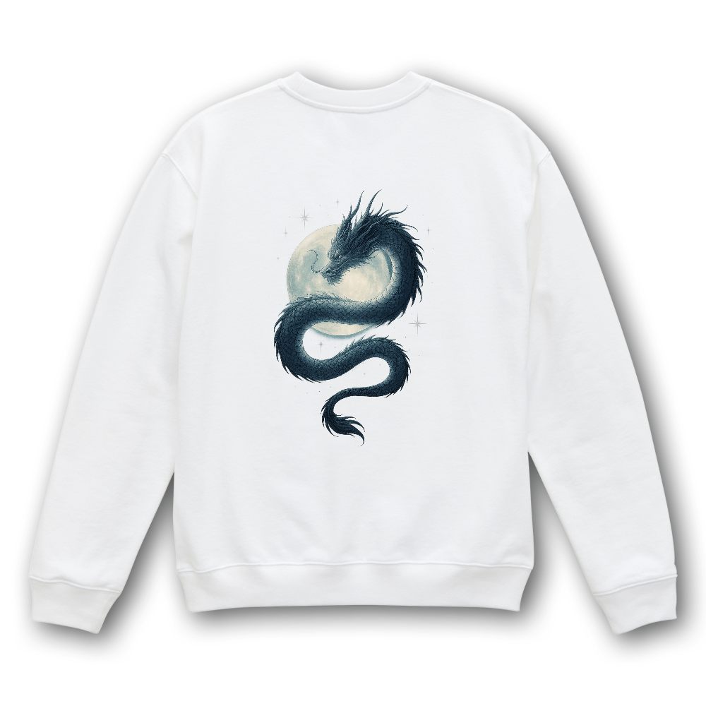 静かに空へ昇る“龍の気”をまとった、特別デザインの白スウェット。