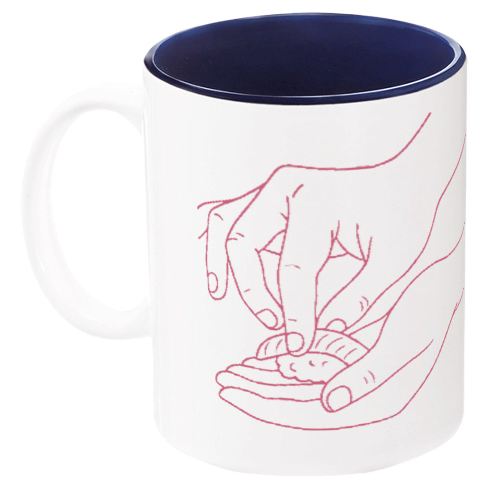 転写紙にインクをプリントし高温の熱をかけることで、インクを気化させマグカップに浸透させる加工方法です。マグカップに直接浸透させることで、表面には印刷した違和感(凸凹)が全く残りません。