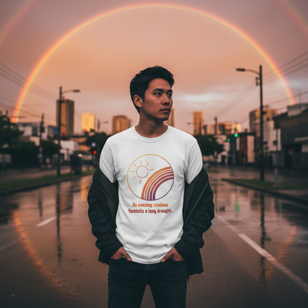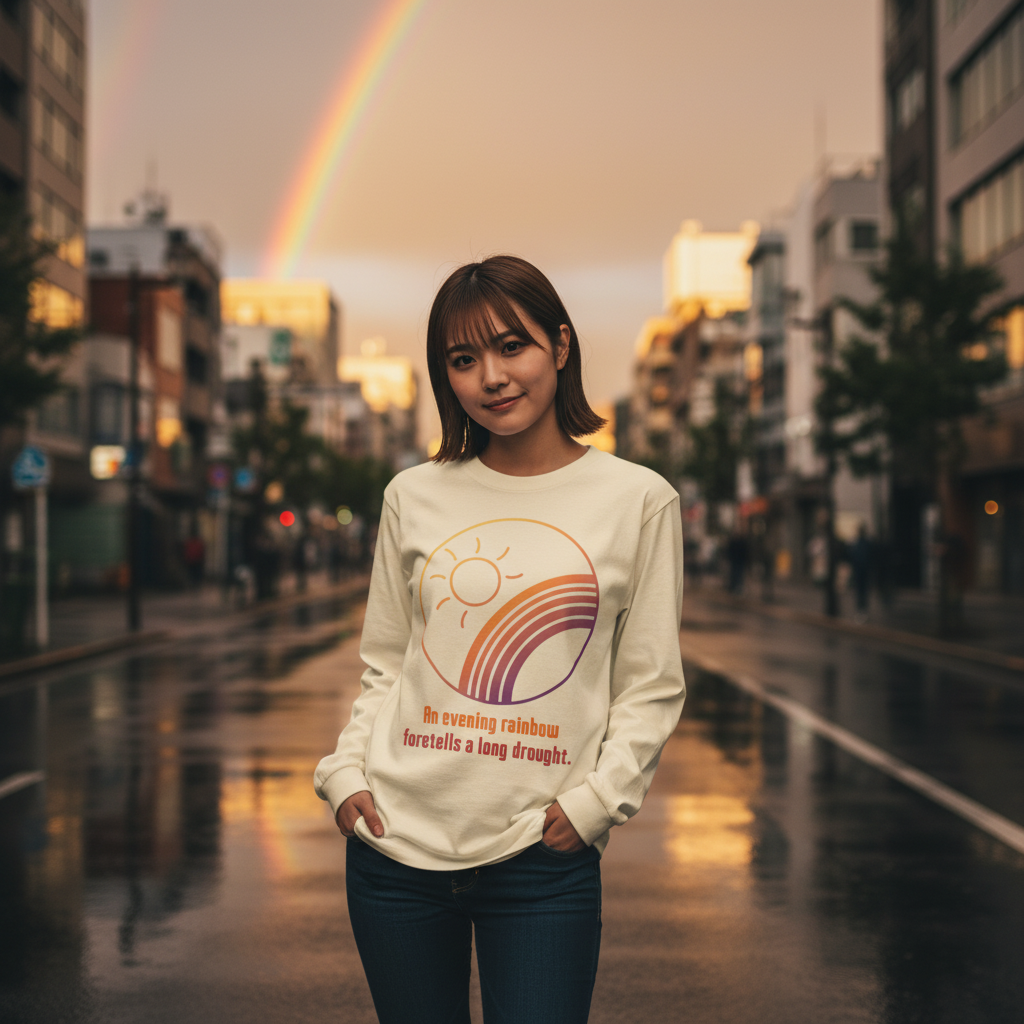 [ロングTシャツ] An evening rainbow foretells a long drought.