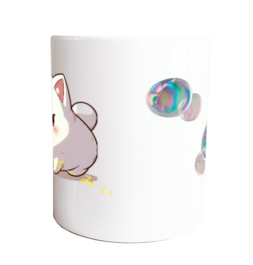 マグカップ「ぷっくり猫"ぷーみぃ”とシャボン玉」