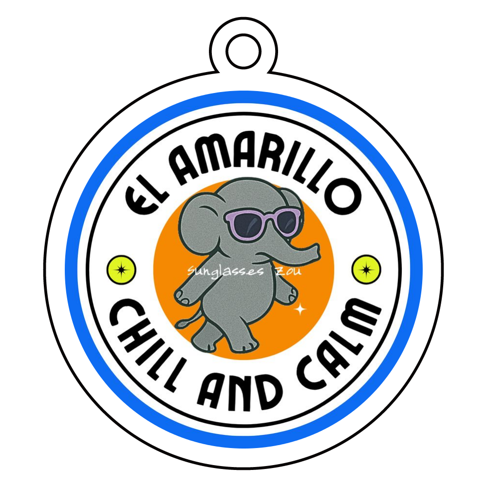 丸いフォルムが可愛い円形キーホルダーに、レトロポップなサングラスゾウをデザイン。
