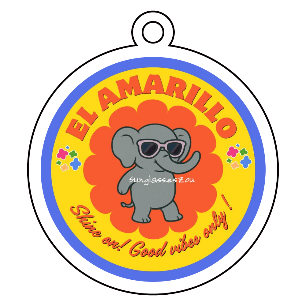 丸いフォルムが可愛い円形キーホルダーに、レトロポップなサングラスゾウをデザイン。