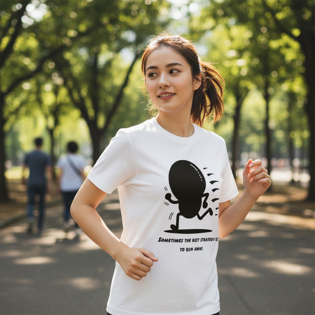 「三十六計逃げるに如かず(Sometimes the best strategy is to run away.)」をシンプルにデザインしました。「三十六計逃げるに如かず」は"いざというときは、逃げるのが最良の策である"ということを意味することわざです。人生には色々な困難がありますが、"逃げる"という選択も持っておきたいですね。