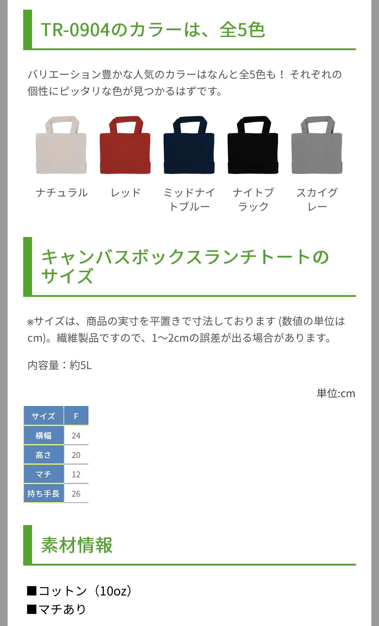 キャンバスボックスランチトート