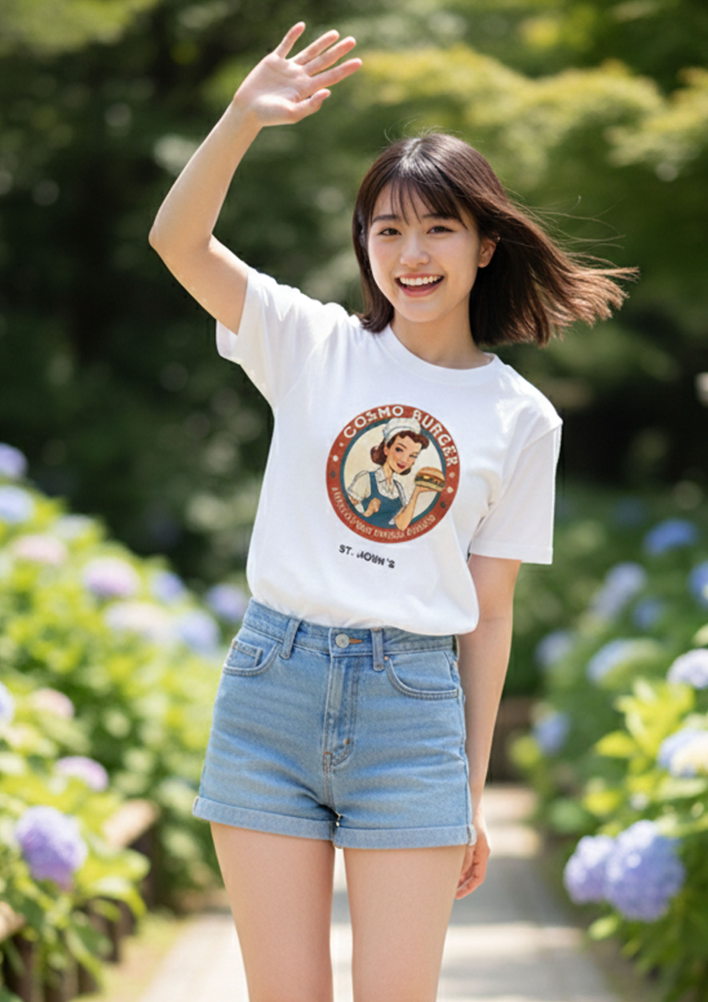 1枚からフルカラーで手軽にプリント。アパレル風の自然な風合いになります
