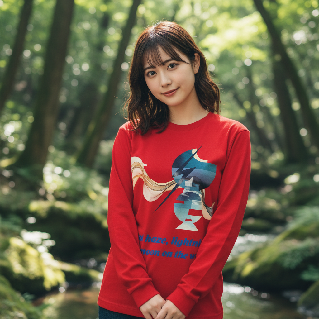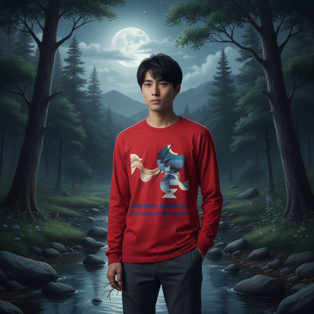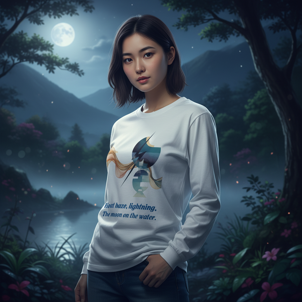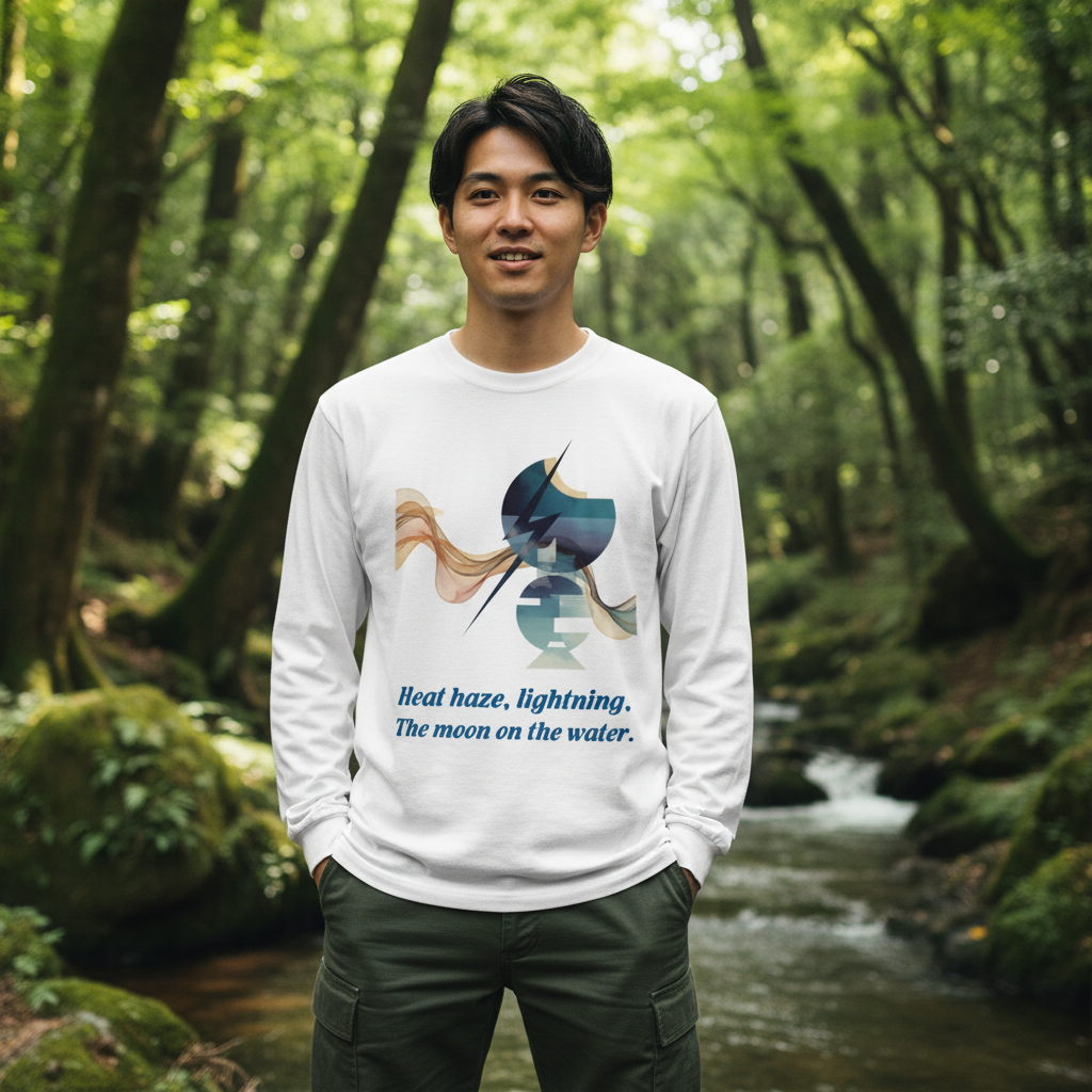 [ロングTシャツ] Heat haze, lightning, and the moon on the water.