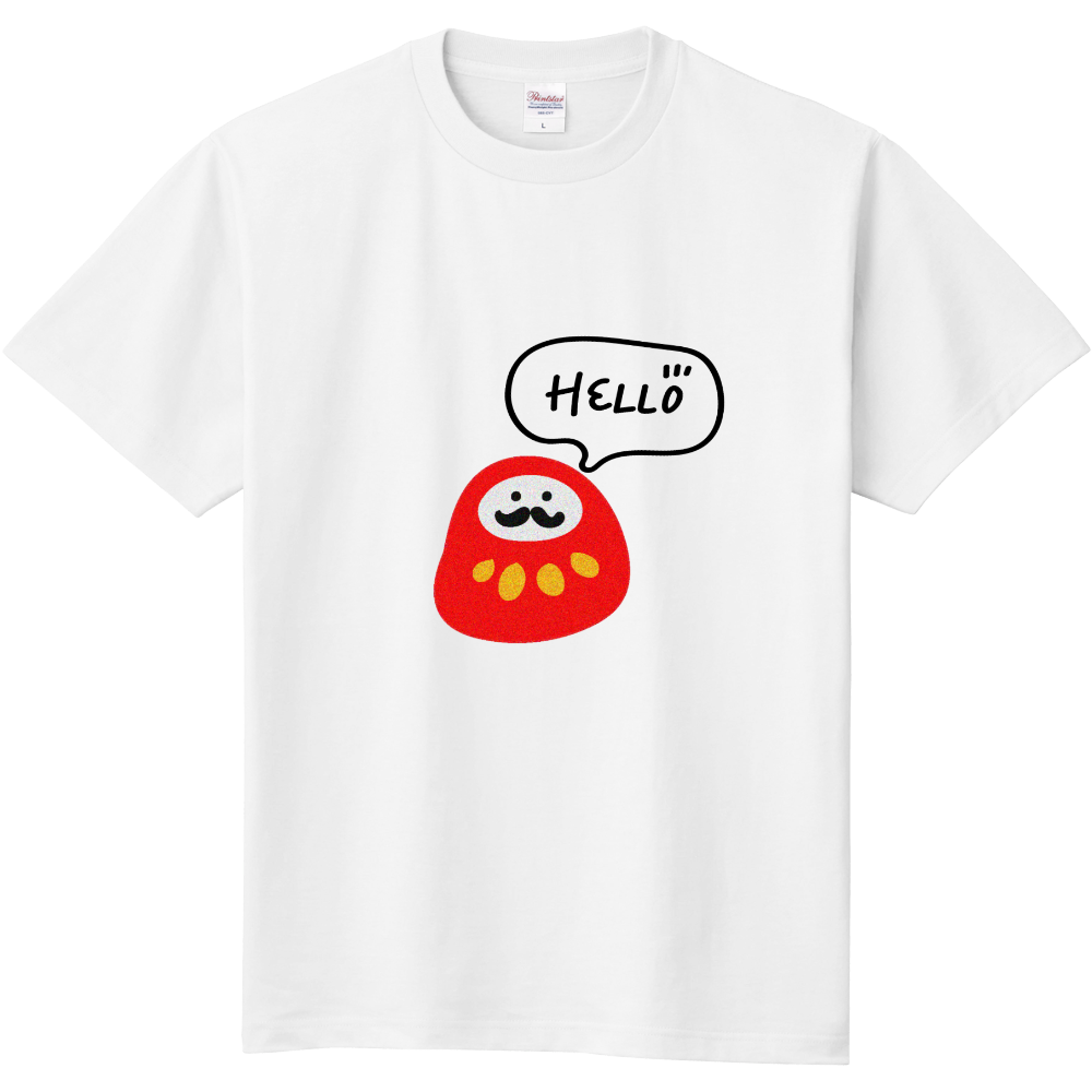 シンプルな白Tに、ゆるっと可愛いだるまのデザインを添えた1枚。