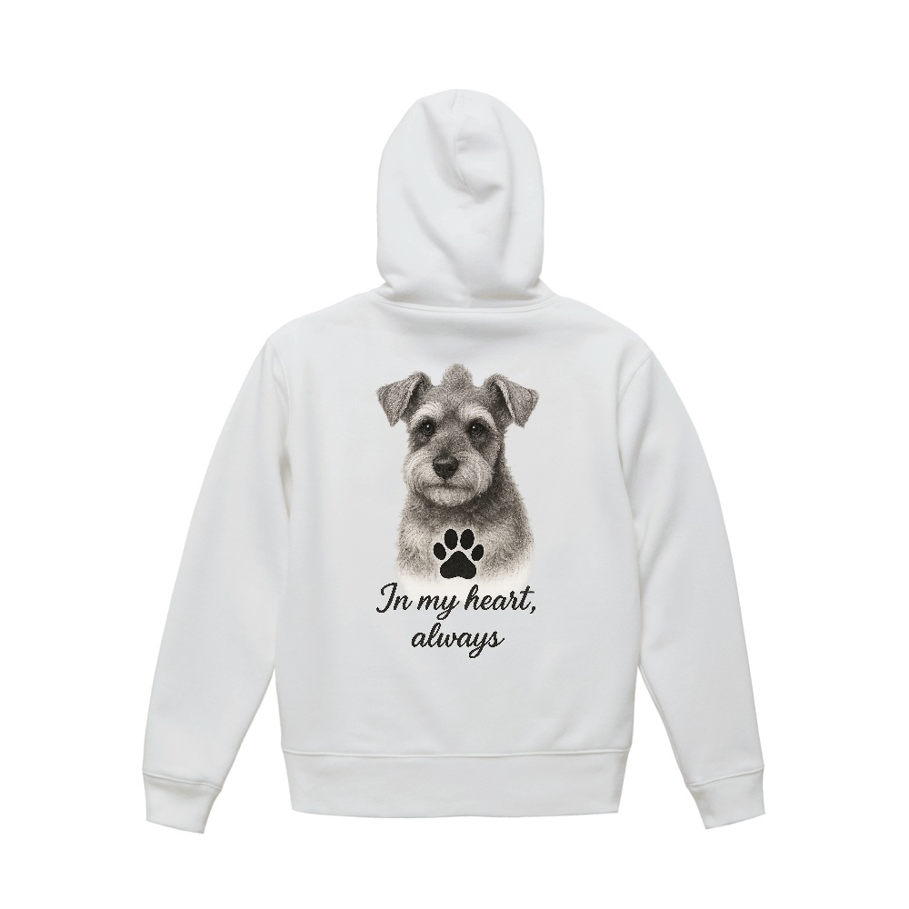 パーカーにはフードがある為 無料デザインで作成して頂いたTシャツのプリントの位置を変え パーカーにプリントし作成しました。