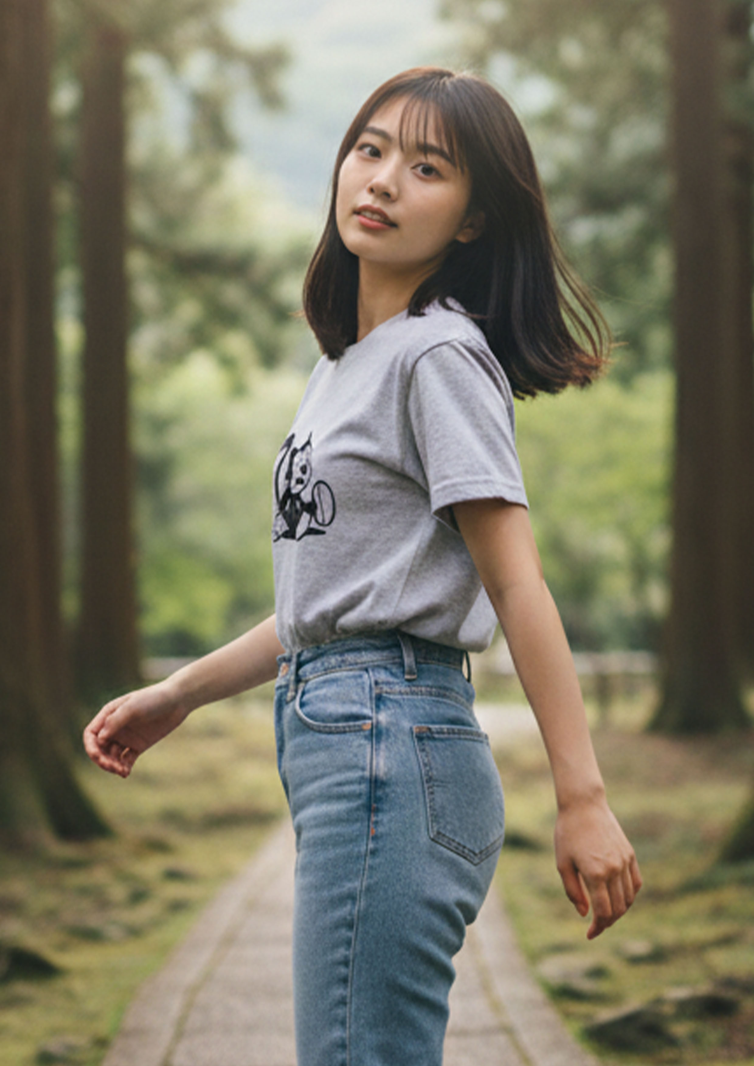1枚からフルカラーで手軽にプリント。アパレル風の自然な風合いになります