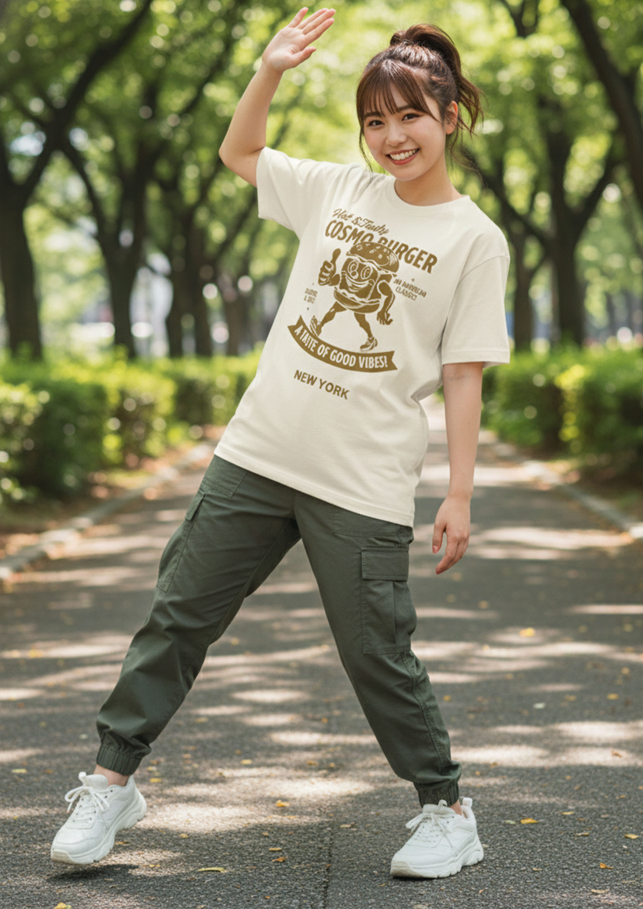 1枚からフルカラーで手軽にプリント。アパレル風の自然な風合いになります