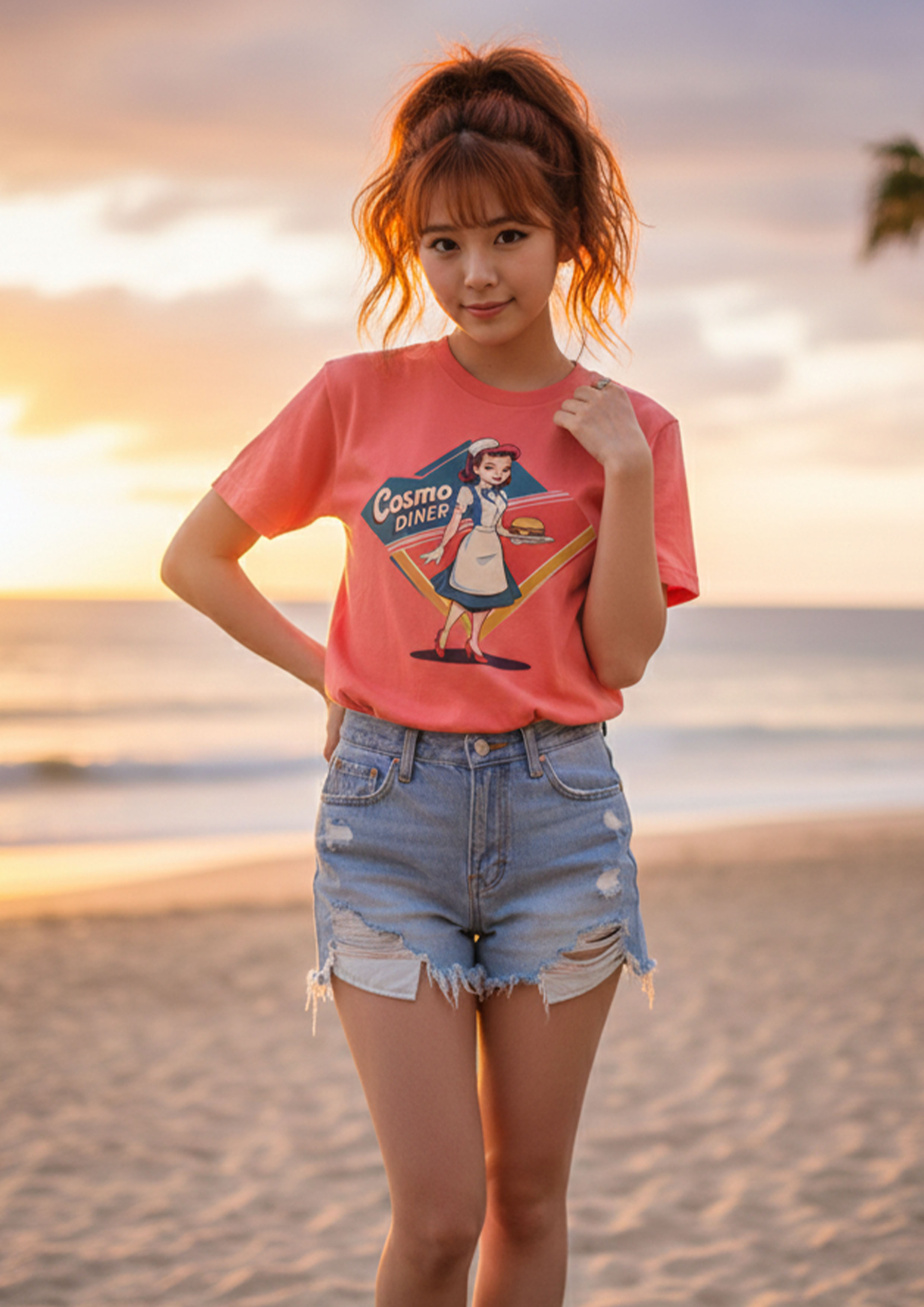 1枚からフルカラーで手軽にプリント。アパレル風の自然な風合いになります