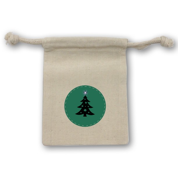 Xmasツリー巾着(SS)コットン ナチュラル