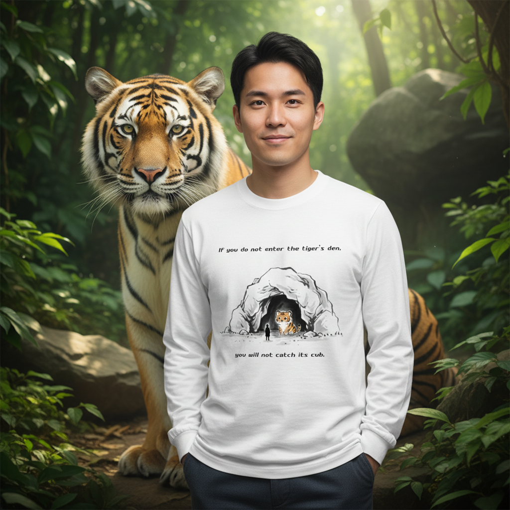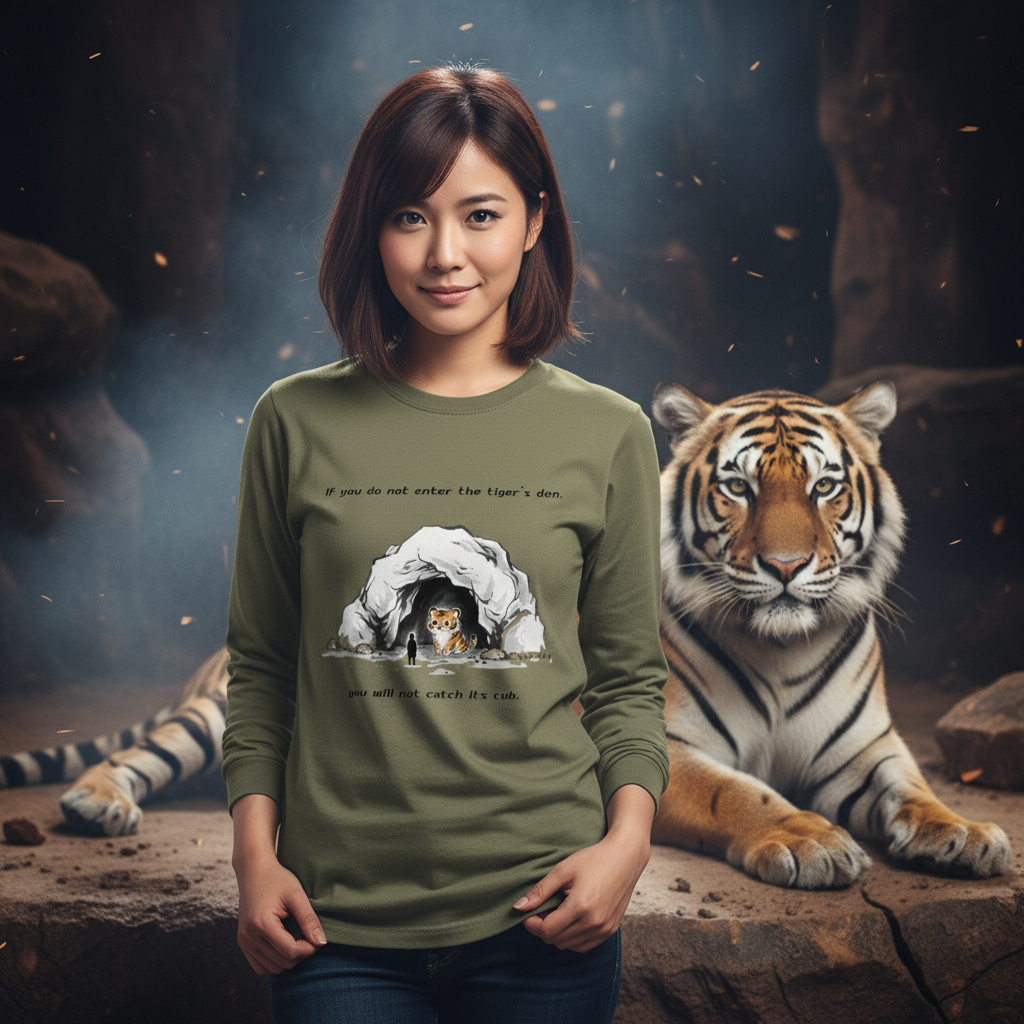 [ロングTシャツ] If you do not enter the tiger’s den, you will not catch its cub.