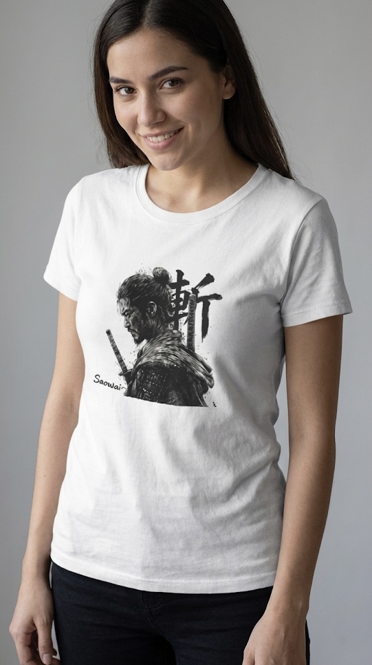 ★白地に映える 手書きイラストです!侍からの殺気をイラストに現して”斬”の文字を背景に配置してます!