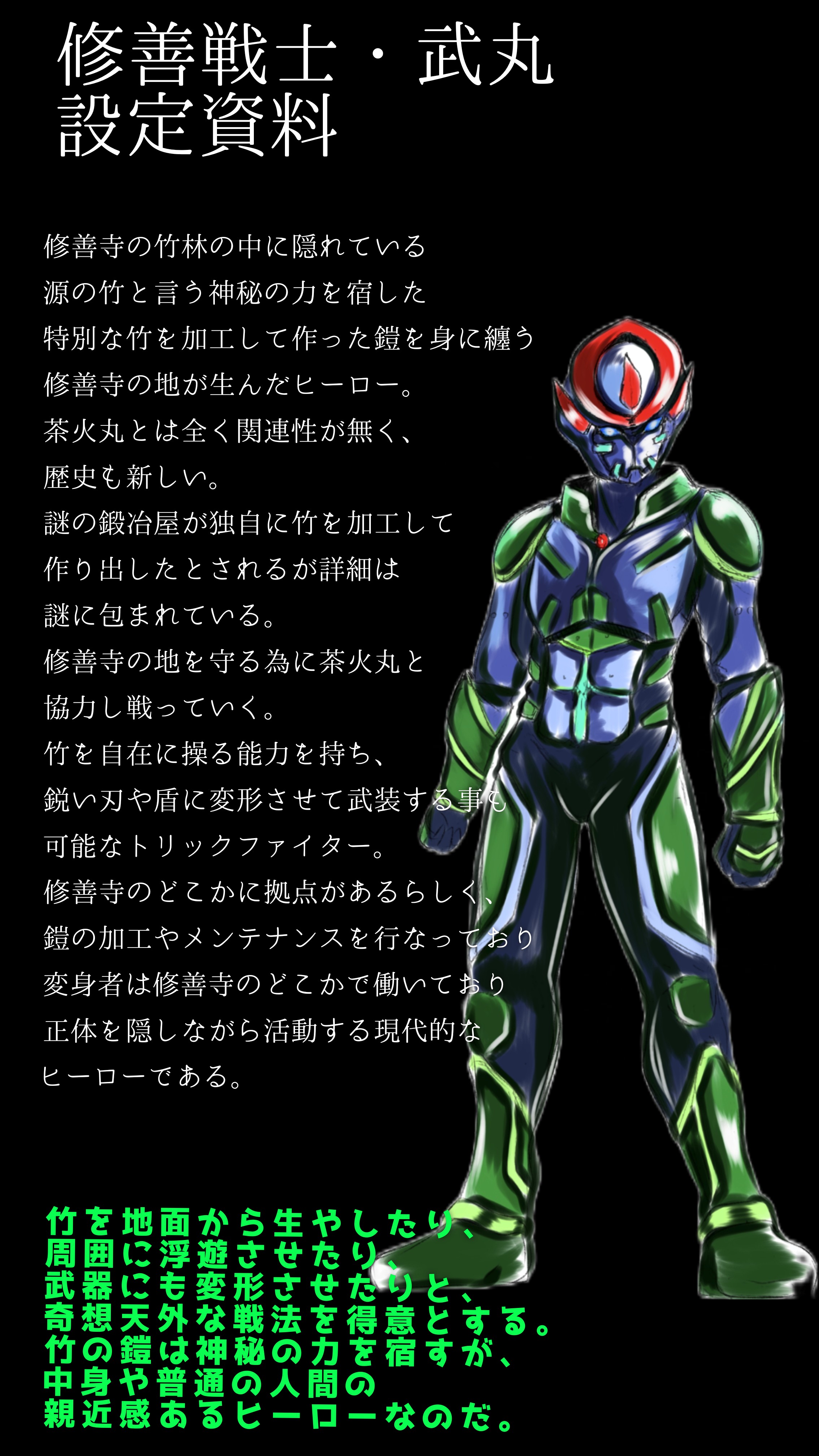 神秘の竹の装甲を身に纏い戦う修善寺の戦士。