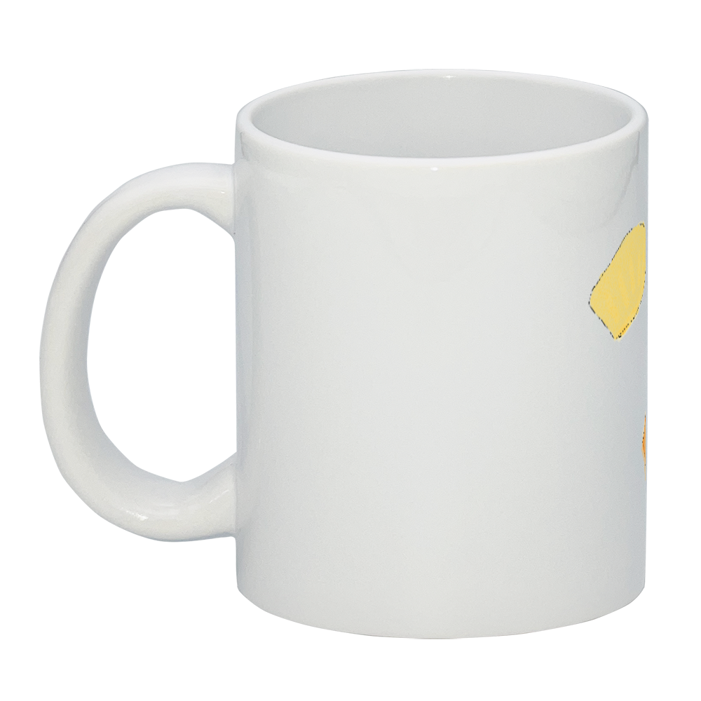 転写紙にインクをプリントし高温の熱をかけることで、インクを気化させマグカップに浸透させる加工方法です。マグカップに直接浸透させることで、表面には印刷した違和感(凸凹)が全く残りません。
