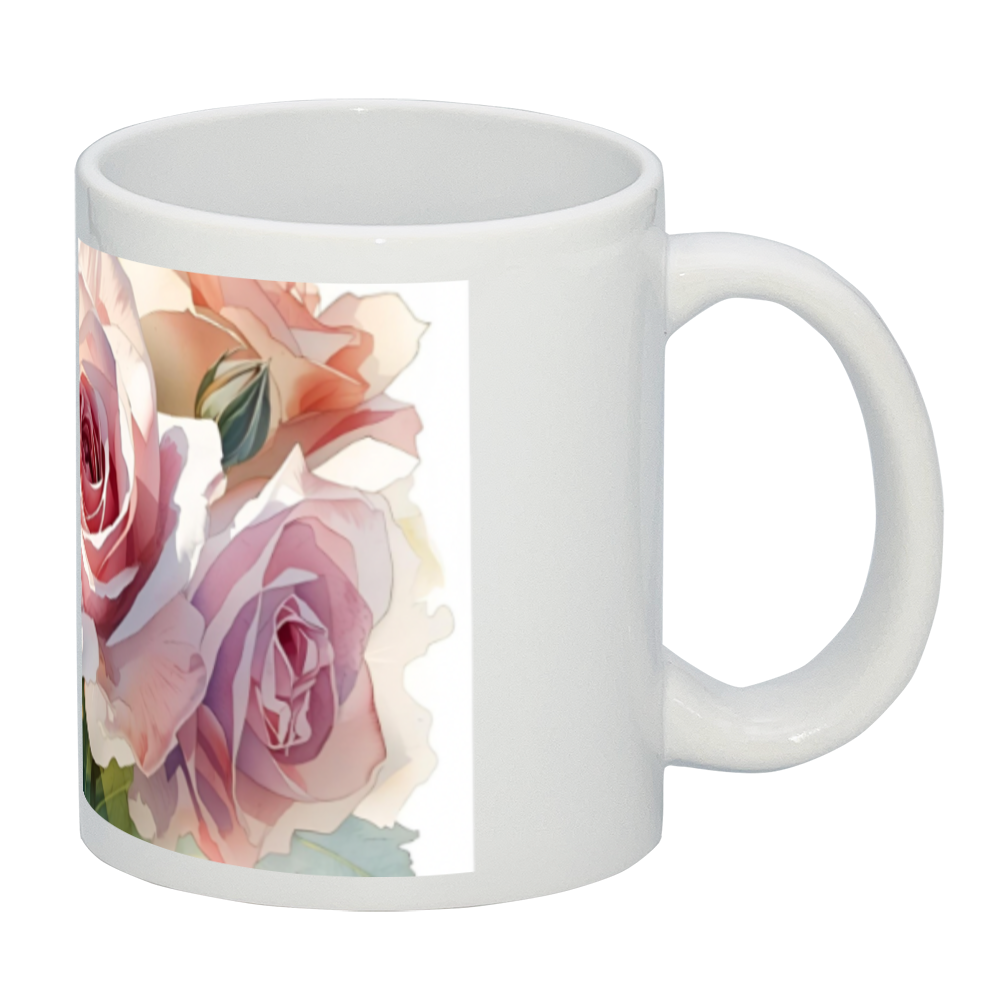 転写紙にインクをプリントし高温の熱をかけることで、インクを気化させマグカップに浸透させる加工方法です。マグカップに直接浸透させることで、表面には印刷した違和感(凸凹)が全く残りません。