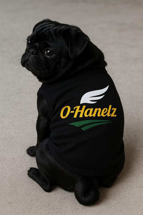 こちらの注意不足で、バックプリントのマークとワンちゃんの名前の位置がずれていました。