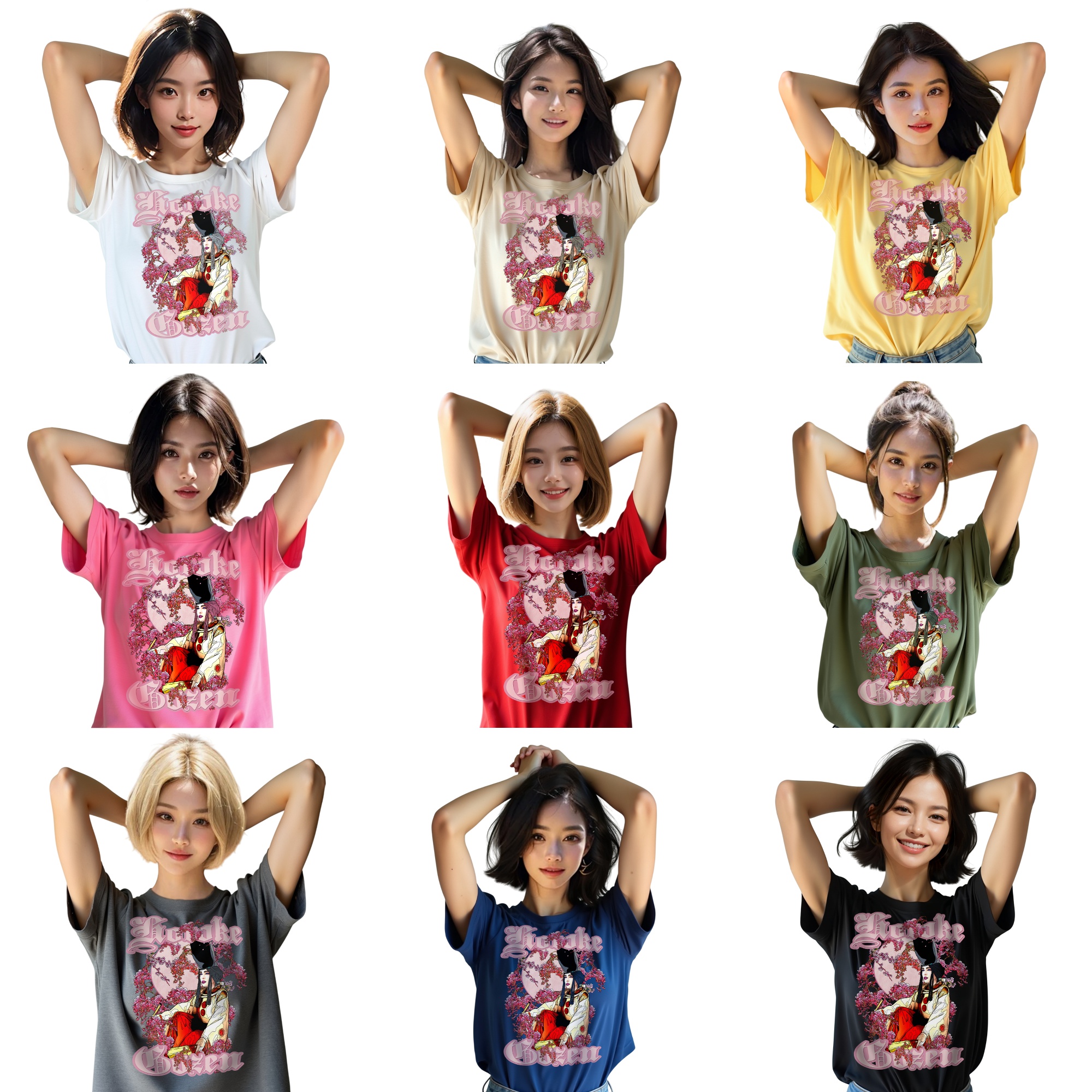 日本の歴史、神話、昔話に登場する力強く優雅な女性たちをモチーフにデザインしています。多彩な色を利用しアールデコ風に仕上げています。