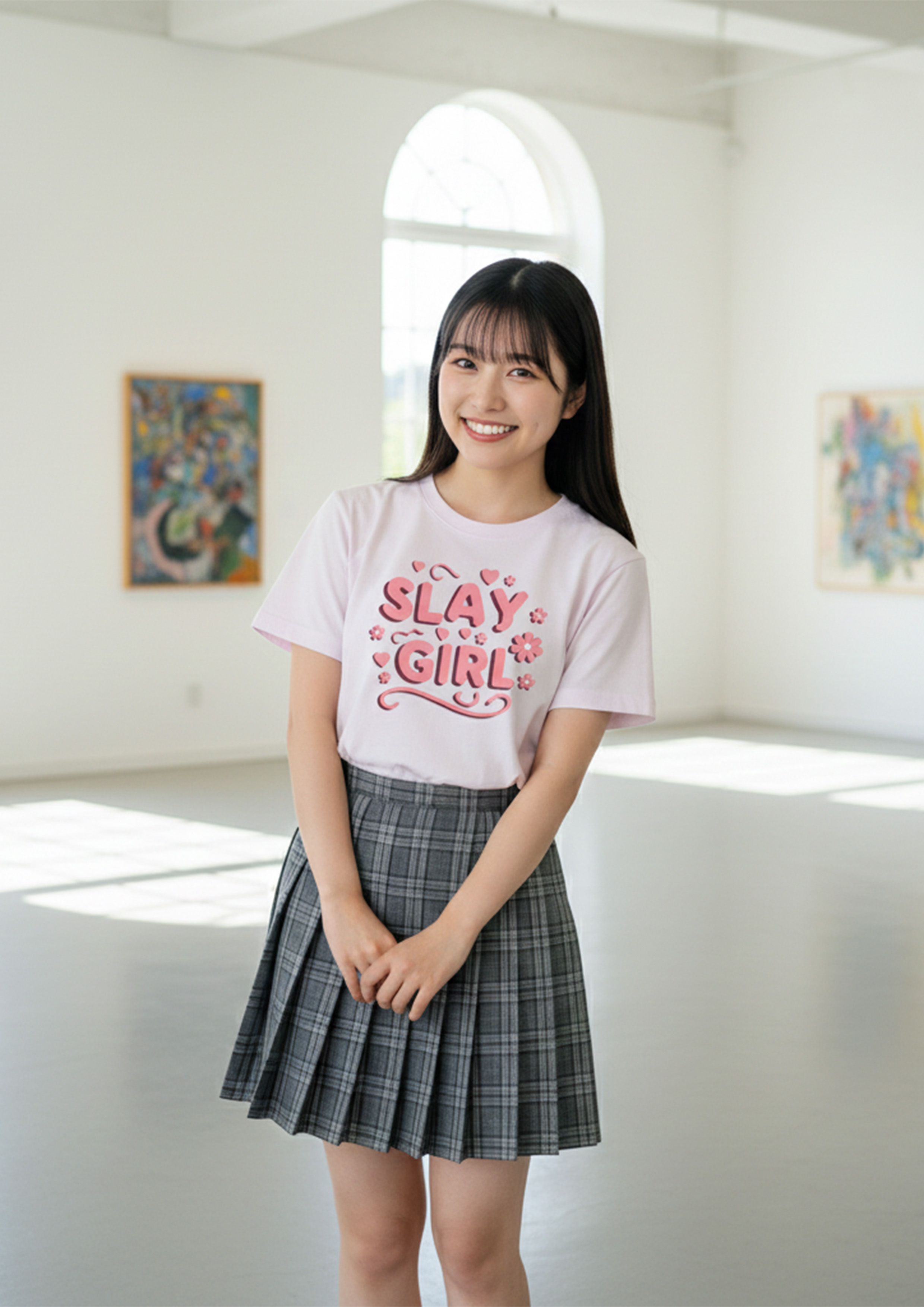 写真は友達の写真を使っているので全体ではなくシャツとプリントの境目です。