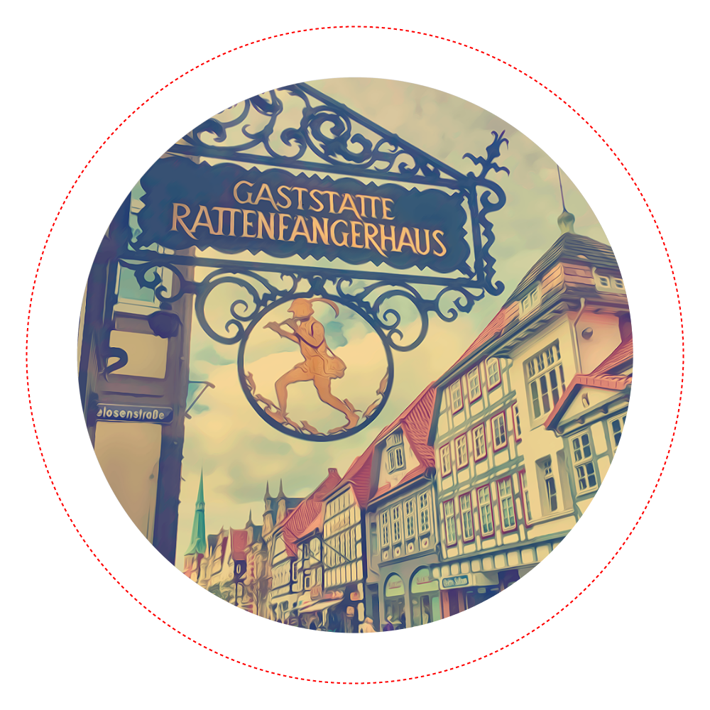 ドイツ ハーメルンの町。ハーメルンの笛吹き男。