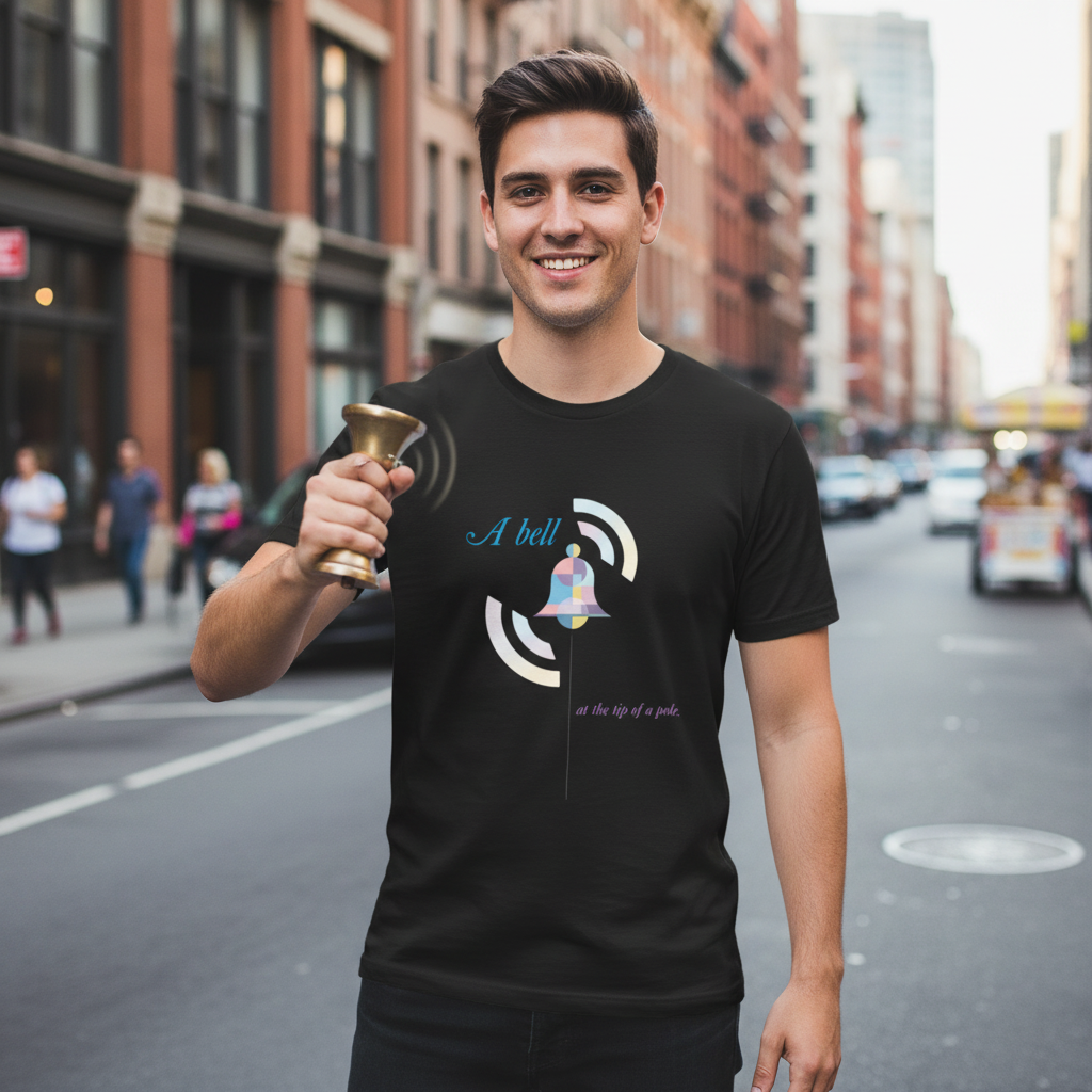 「竿の先の鈴(A bell at the tip of a pole)」をデザインしました。「竿の先の鈴」は”やかましいこと。よくしゃべること"を意味することわざです。しゃべることは良いことですが、過ぎないようにしたいですね。