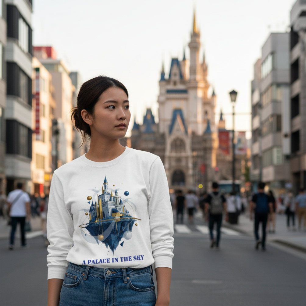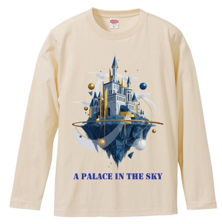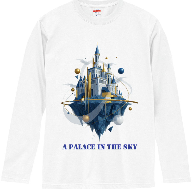 「空中楼閣(A palace in the sky)」をファンタジー風にデザインしました。「空中楼閣」は"根拠のない空想や現実からかけ離れたこと"を意味することわざです。自分の人生は空中楼閣にならないよう、気を付けたいものですね。