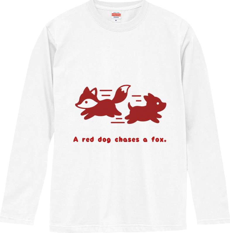 「赤犬が狐を追う(A red dog chases a fox.)」をかわいらしくデザインしました。「赤犬が狐を追う」は"優劣などが区別しにくいこと"を例えることわざです。世の中には区別が難しいものが多いですよね。