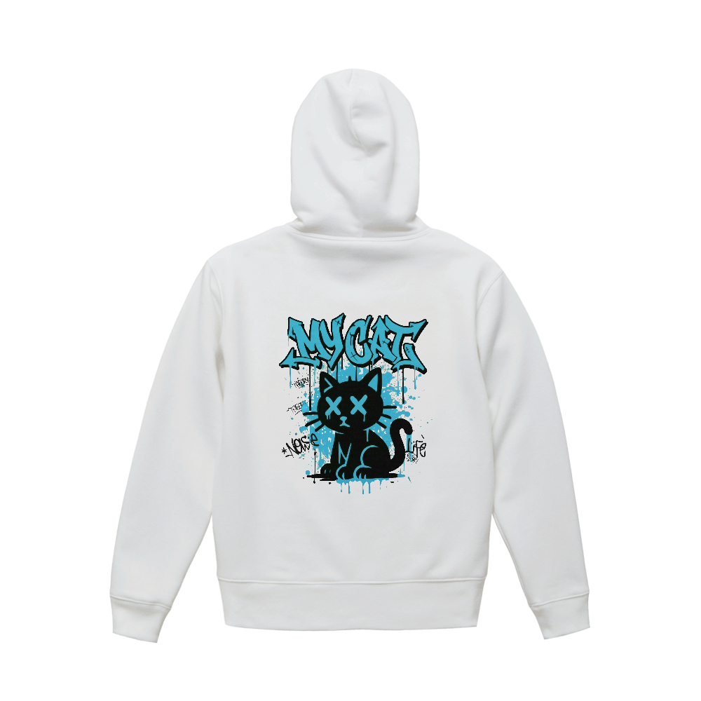 パーカーにはフードがある為 以前無料デザインでTシャツ作成してプリントの位置を変え パーカーにプリントしてみたした。