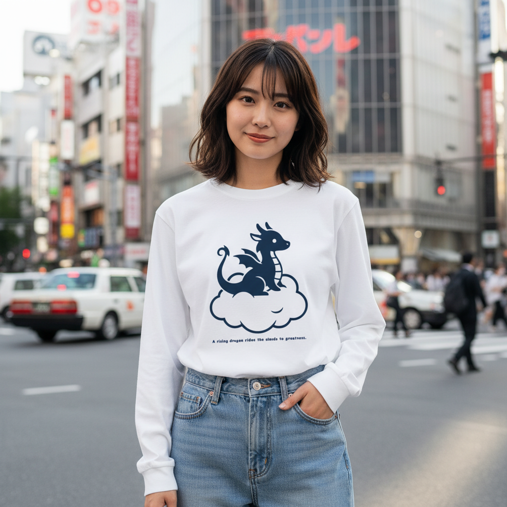 [ロングTシャツ] A rising dragon rides the clouds to greatness.