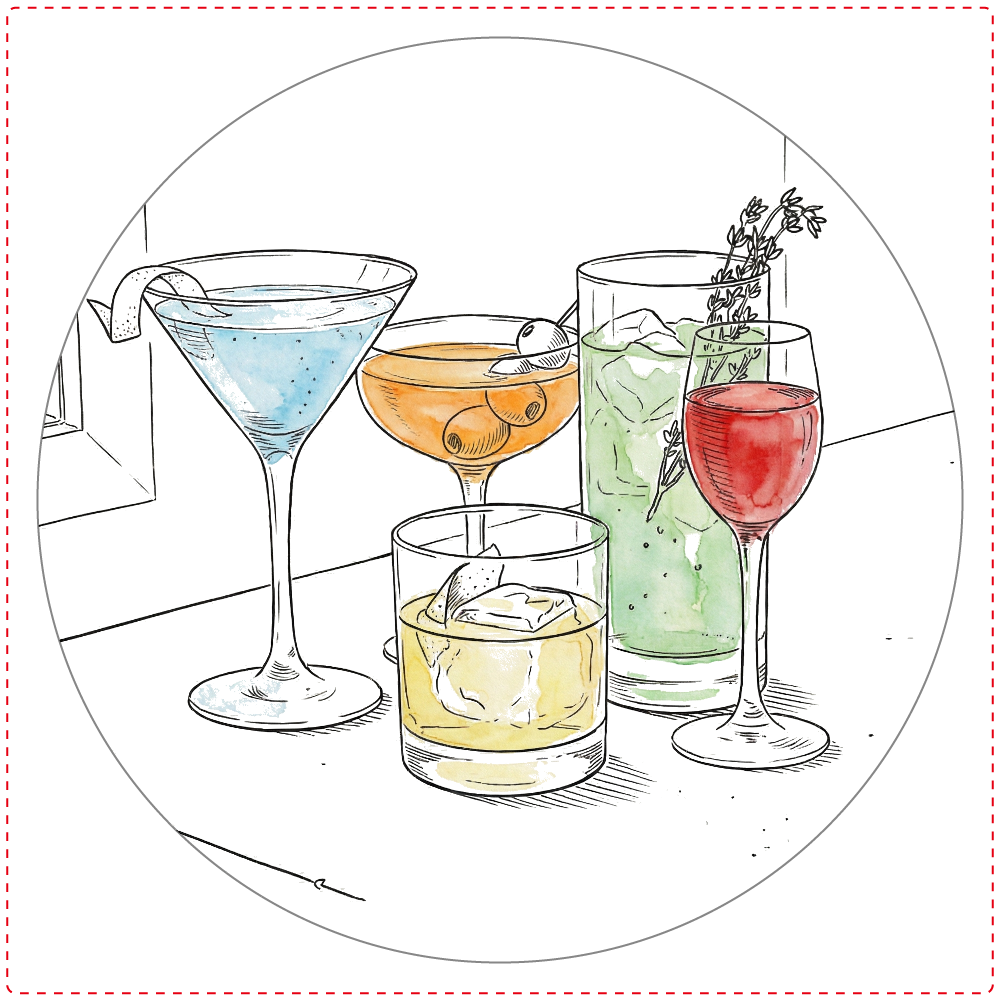 空いたCocktail glassをボーっと眺めて、入っていたであろう中身を想像してスケッチしました。