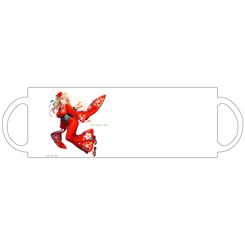 艶やかな赤の和装のオリジナルキャラクター「煌坂瑠璃」 を贅沢にデザインしたマグカップです。
