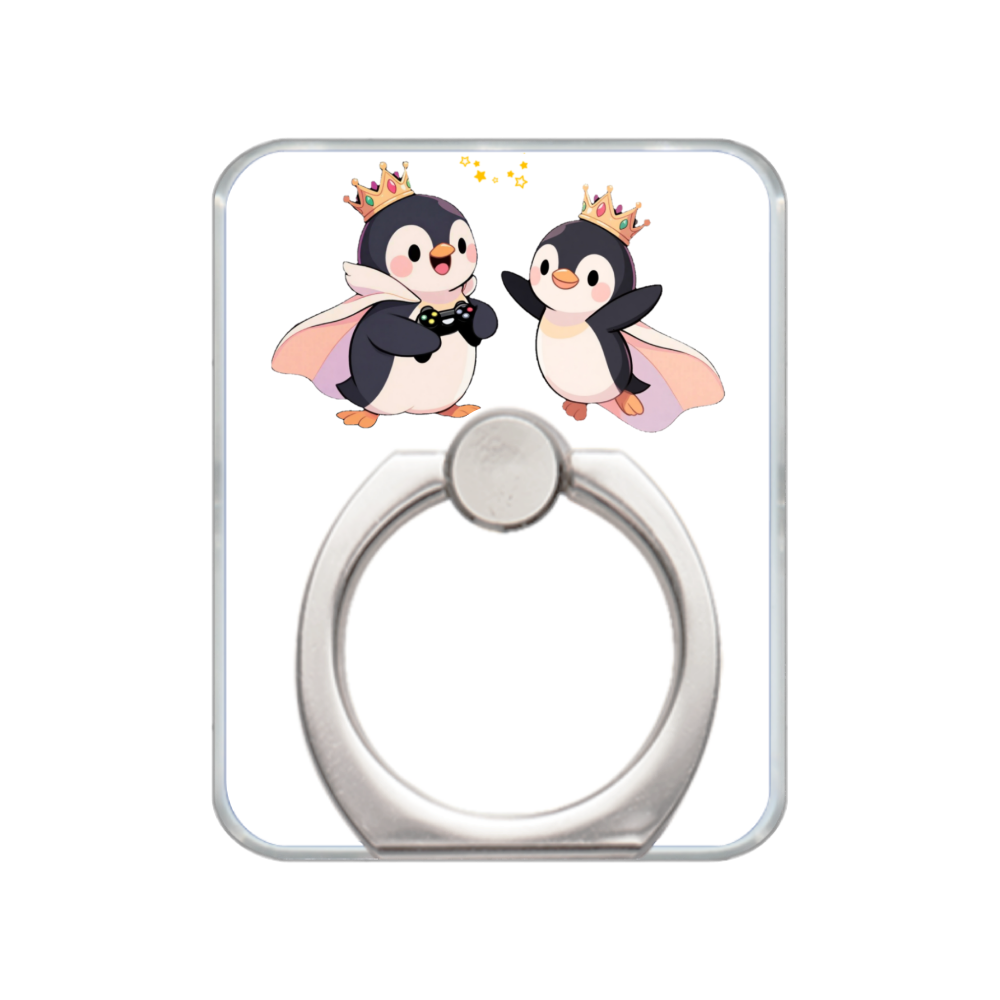 「イリオ」と「セリーニ」の仲睦まじい姿がデザインされた、スクエア型のスマホリングです。
