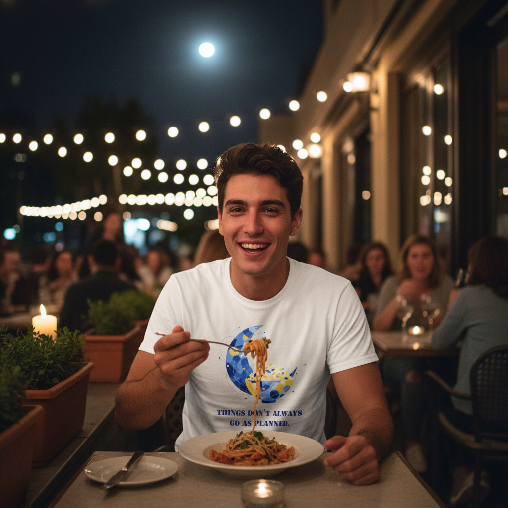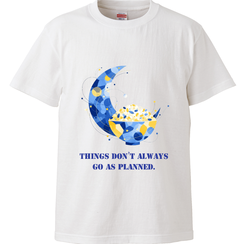 「いつも月夜に米の飯(Things don’t always go as planned.)」を現代アート風にデザインしました。「いつも月夜に米の飯」は"飽きることのない気楽な生活"を例えたことわざです。こんな生活も良いですよね。