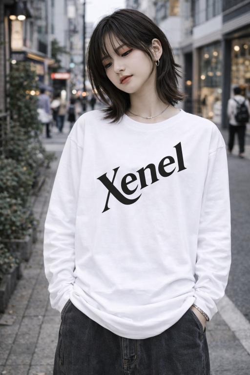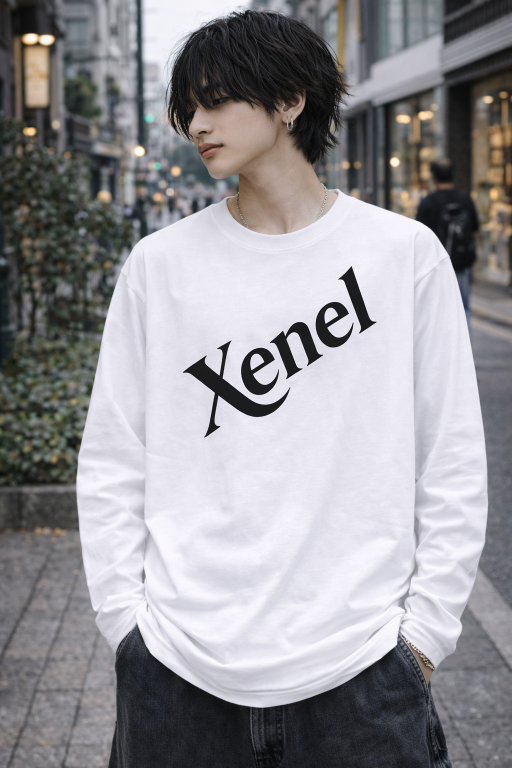 斜めに配置したXenelのロゴが、さりげない存在感を放つロングTシャツ。