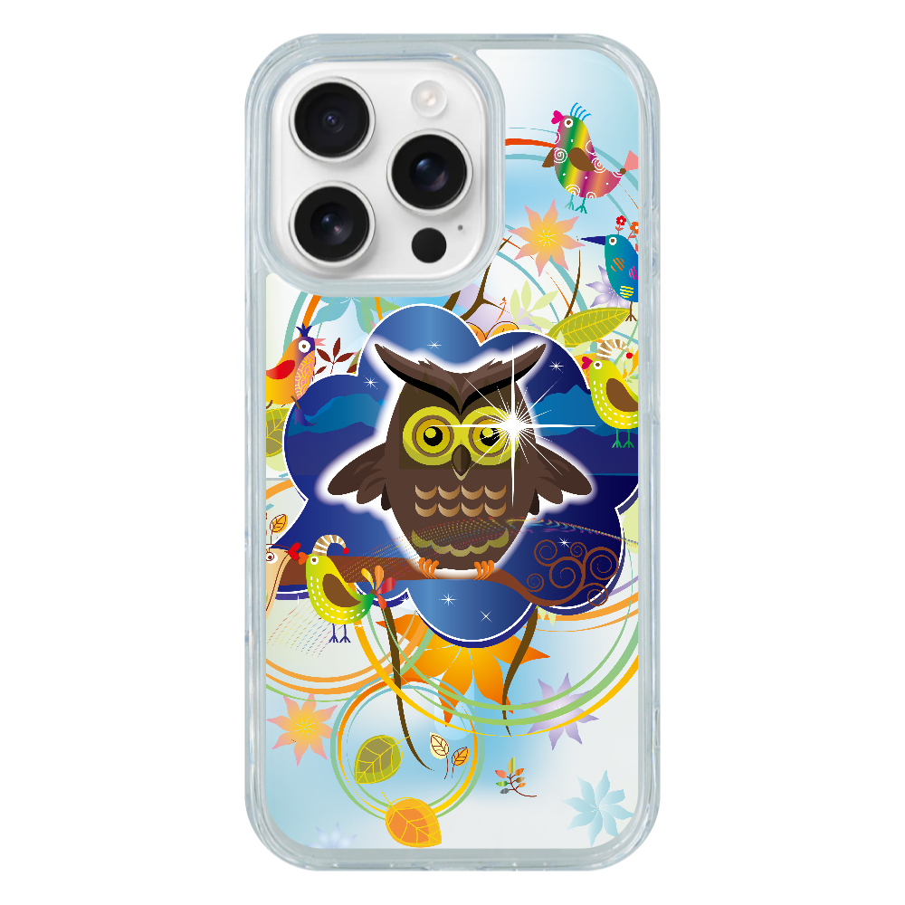 G163-16p ポップ『フクロウ』iPhone16Pro MagSafe対応 耐衝撃クリアケース