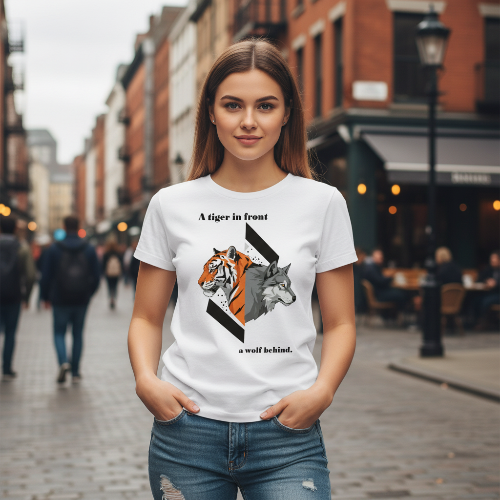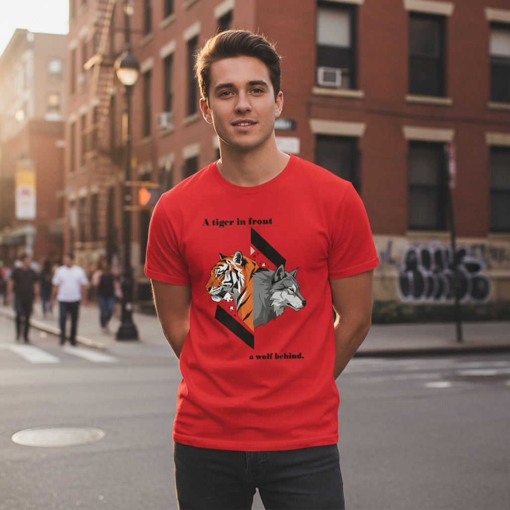 [Tシャツ] A tiger in front and a wolf behind.