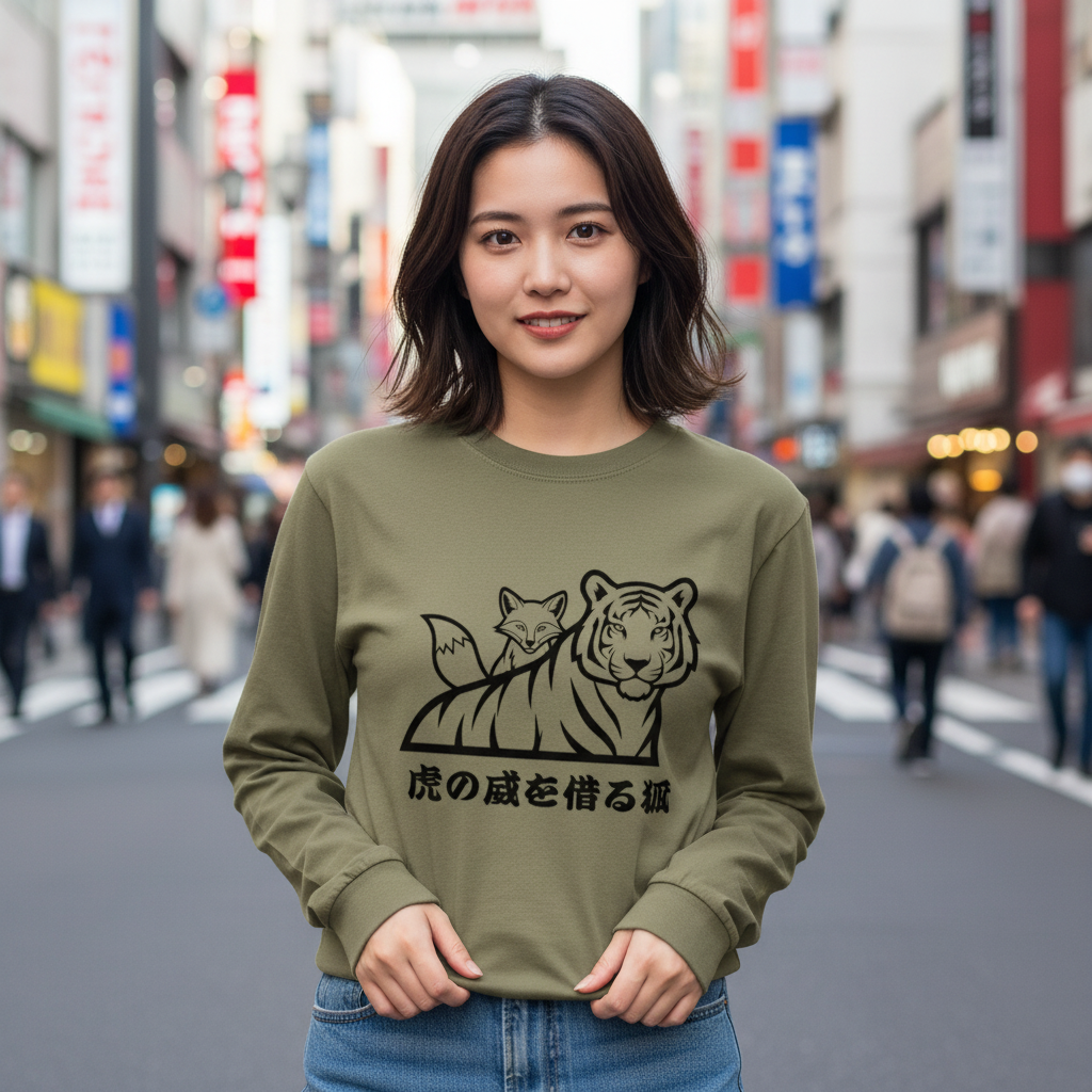 [ロングTシャツ] A fox borrowing the authority of a tiger.