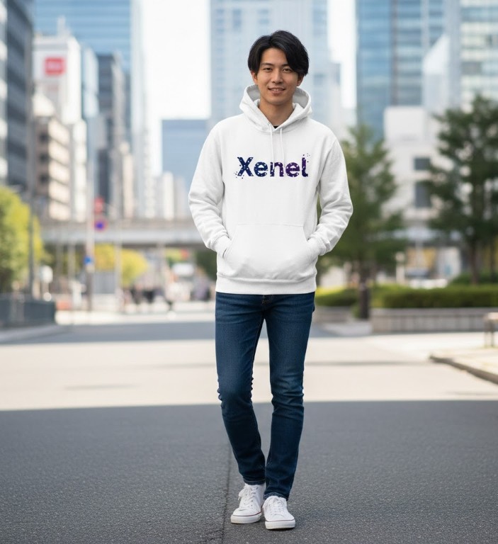 「Xenel」のロゴに、夜空と結晶を重ねたデザイン。
