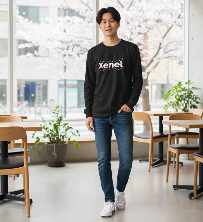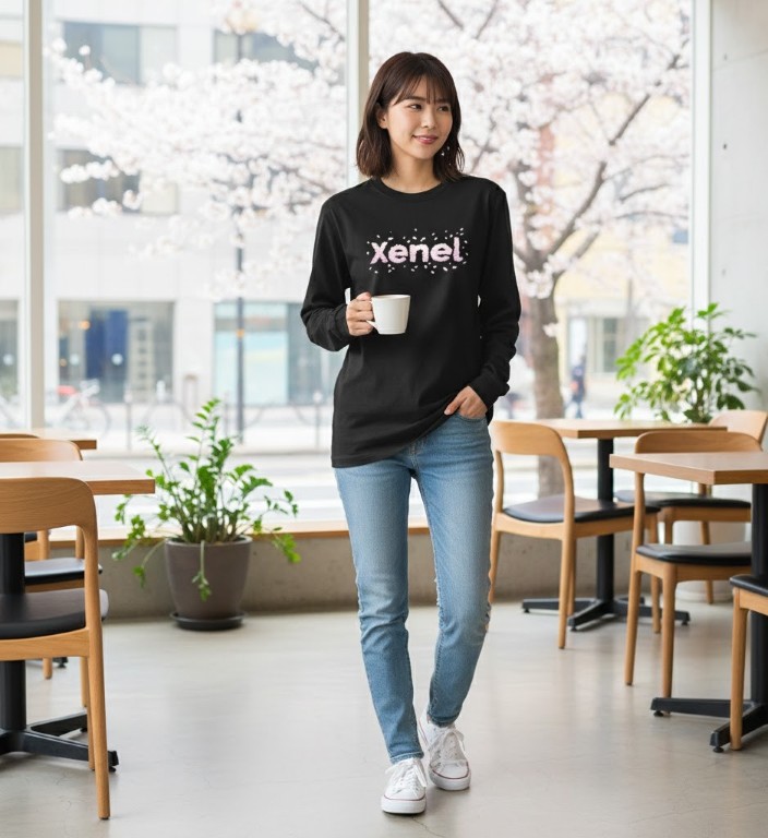 Xenelのロゴに散りばめられた小さな光粒が、静かに存在感を放つロングスリーブTシャツ。