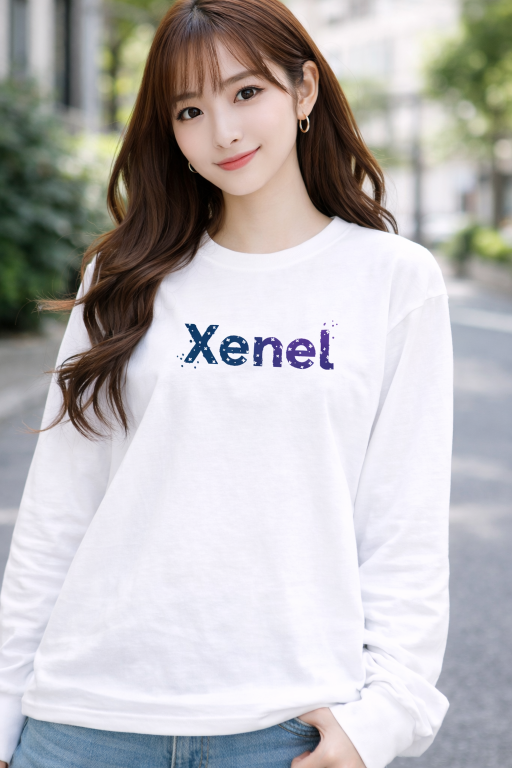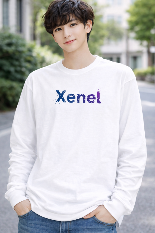 深みのあるブルーグラデーションで描かれた「Xenel」ロゴが、静かに存在感を放つロングスリーブTシャツ。