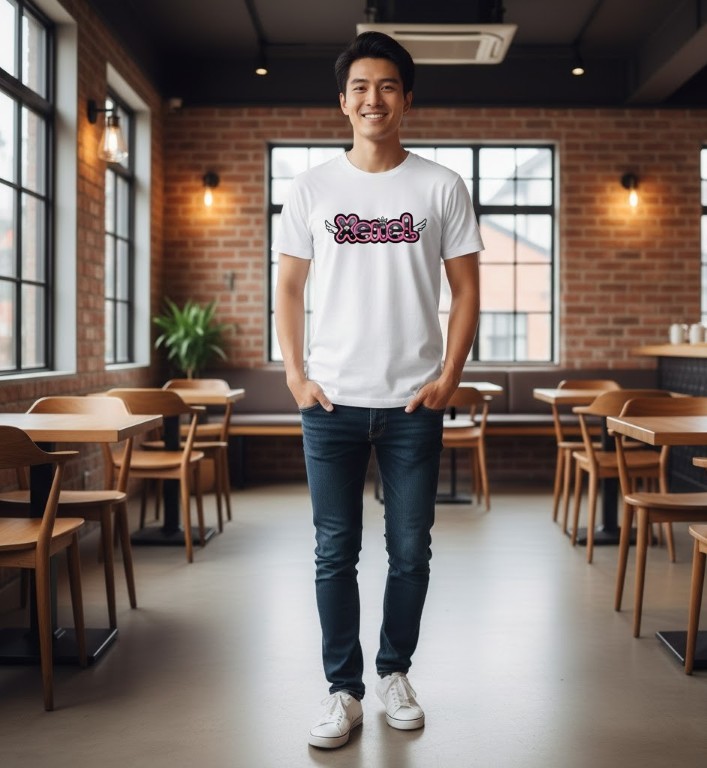 1枚からフルカラーで手軽にプリント。アパレル風の自然な風合いになります